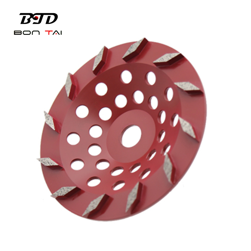 Rhombus ntu pob zeb diamond khob lub log haum rau ntau lub kaum sab xis grinders, siv rau kev sib tsoo pob zeb, terrazzo thiab lwm yam khoom siv, ntau daim ntawv cog lus muaj rau kev sib tsoo sib txawv hardness pem teb. Nws kuj tuaj yeem siv rau nyias epoxy, kua nplaum, pleev xim, txheej tshem tawm. Kev txhawb nqa tshwj xeeb rau ntuj thiab txhim kho plua plav extraction. Tshwj xeeb tsim cov ntu zoo rau kev ua haujlwm ntau dua.